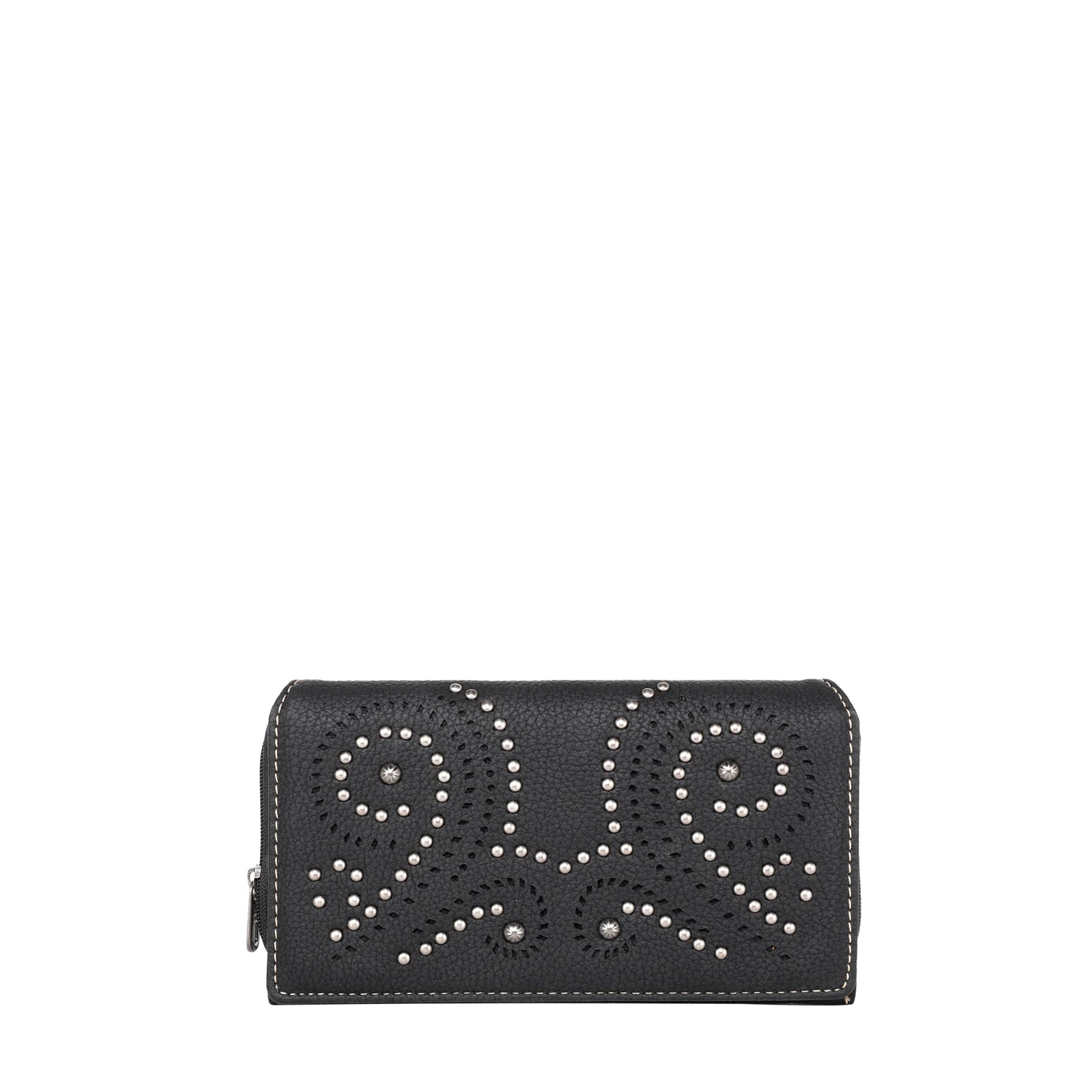 - Accented with antique silver studs
