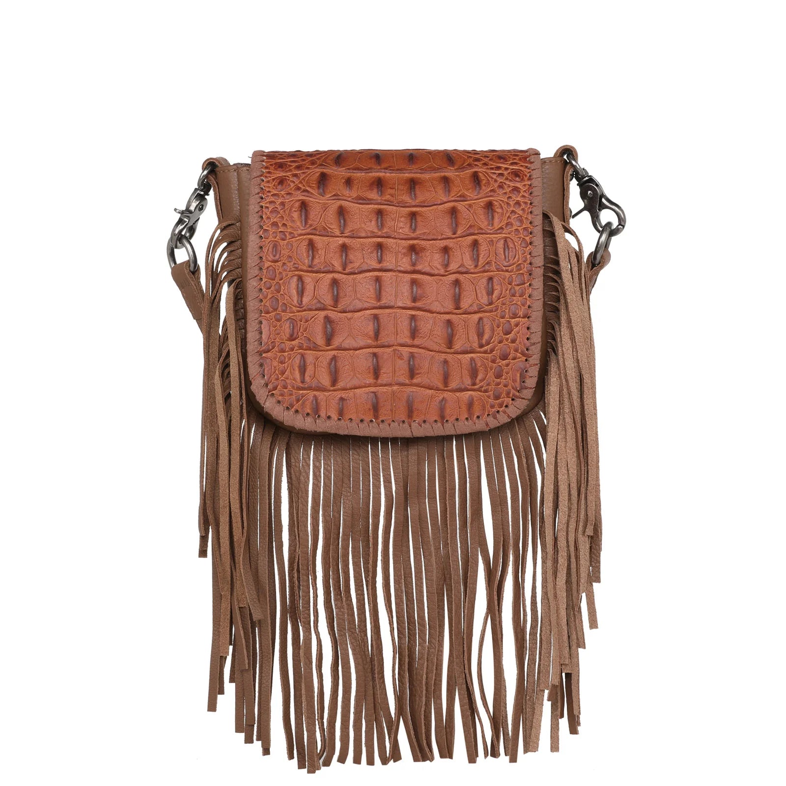 Montana West Genuine Leather Tooled Collection Fringe Crossbody